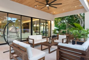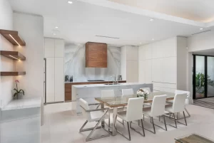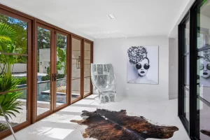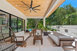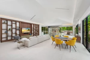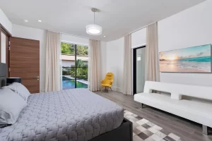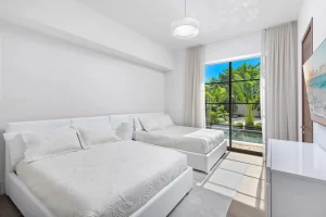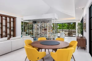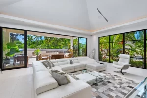 The villa’s terrace and interior are seamlessly fused, with ample living areas in the sun or shade. Play Basketball under the palms and get your workout in before you spark the grill in the afternoon and gather for meals on the veranda. Linger outdoors under the evening sky, dipping into the floodlit pool while sipping drinks.