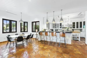 Villa Tranquillo offers an exquisite blend of coastal luxury and natural beauty, perched on a cliff with breathtaking ocean views and stunning sunsets. This 7,500 sq. ft. villa features five beautifully designed bedrooms, each with its own en-suite bathroom, ensuring a luxurious and private retreat for guests. The Mediterranean-inspired decor features open-plan living spaces, vaulted ceilings, and premium materials, creating an atmosphere of elegance and relaxation.